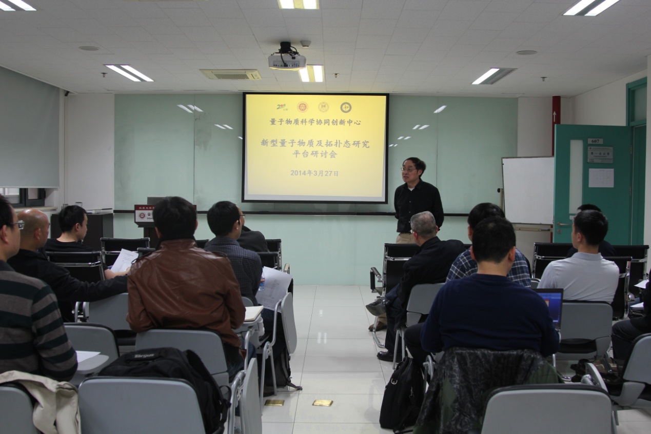 “2011计划-量子物质科学协同创新中心”新型量子及拓扑态研究创新平台学术交流会于2014年3月27日在mg4355vip检测中心举行。会议由中心主任兼平台主任谢心澄教授主持,他在致辞中鼓励平台成员积极开展跨机构交流并对平台建设献计献策。新型量子及拓扑态研究创新平台共20余位成员参加了此次活动,围绕平台研究主题,分别就在研的科学问题进行了介绍和讨论。本次活动为加强平台成员间学术合作、营造协同创新的环境和氛围起到积极作用。