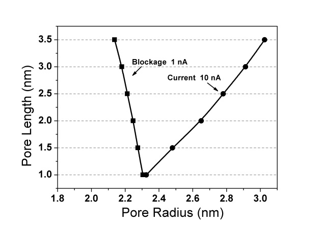纳米孔DNA测序技术被认为是实现第三代快速,低成本,长链直读DNA分子测序的最有竞争力的技术之一,对人类研究遗传病因,个性化医疗等诸多领域具有非常重要的意义。当溶液中的长链DNA分子在电场作用下驱动穿过一个尺度在纳米量级的小孔时,离子电流会由于DNA分子的阻塞作用形成瞬时下降,而对于电流下降的分析可以得知穿孔分子的尺寸,大小,构型等生物学特征。