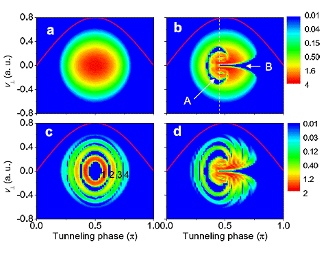 | 图2:通过量子轨迹蒙特卡罗理论得到遂穿电子的遂穿相位及初始动量