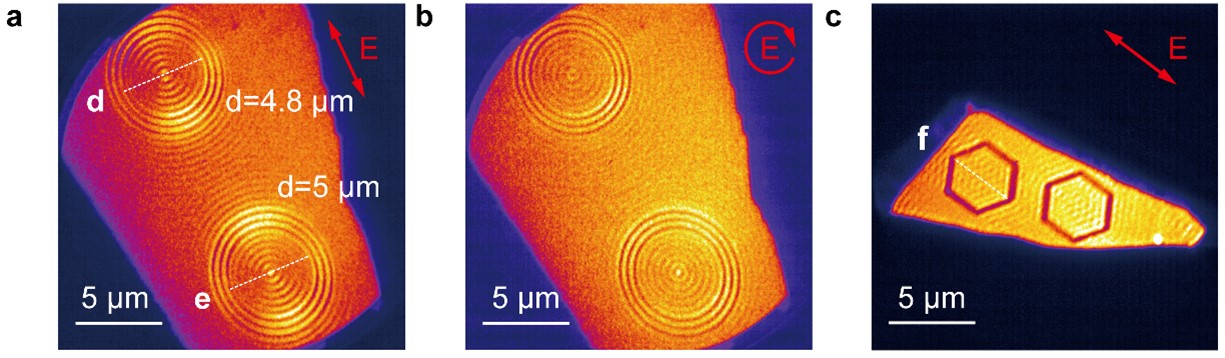 图1. 光发射电子显微镜观测砷化镉纳米片表面的准柱面波光场以及微纳结构对准柱面波光场的调控