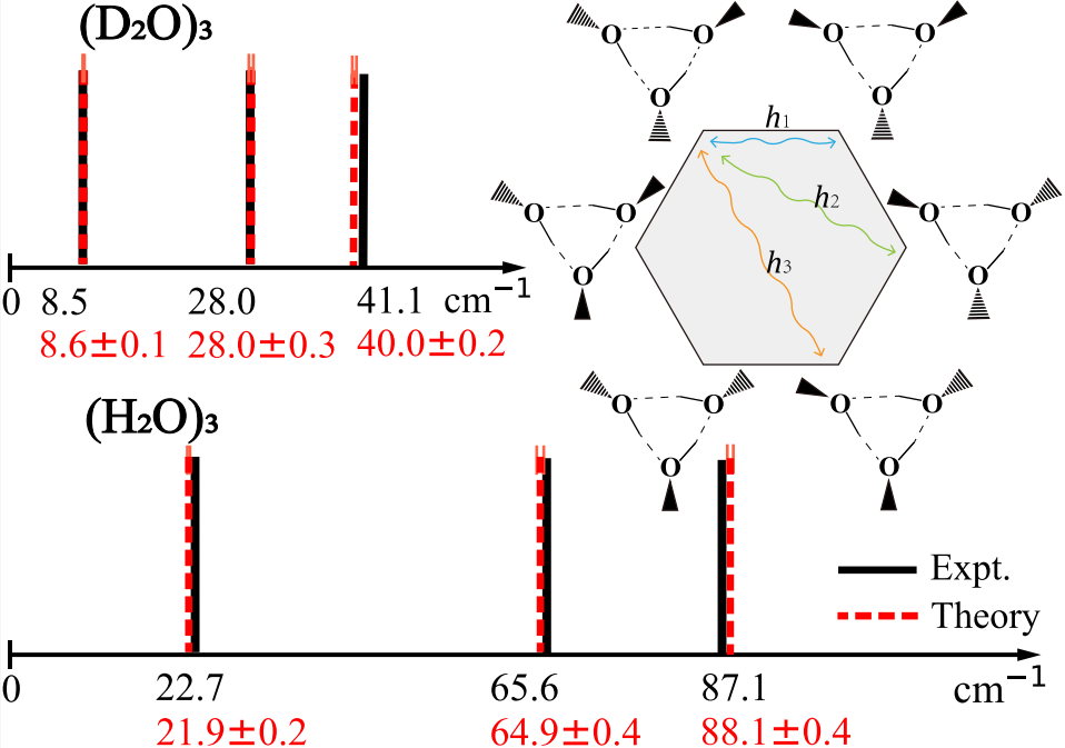 mg4355线路检测官网凝聚态物理与材料物理研究所、人工微结构和介观物理国家重点实验室、纳光电子前沿科学中心、轻元素先进材料研究中心李新征课题组与中国科学院大连化学物理研究所张东辉院士团队、江凌研究员、以及复旦大学化学系方为教授合作,总结出一套计算分子团簇隧穿劈裂谱的新方法,并将其应用至水的三聚体中,获得可以与实验观测在波数精度吻合的精确定量模拟结果。2022年11月22日,相关研究成果以“水三聚体中的扭动隧穿劈裂”(Torsional tunneling splitting in a water trimer)为题,正式在线发表于《美国化学会志》(J. Am. Chem. Soc. 144, 21356 (2022))。