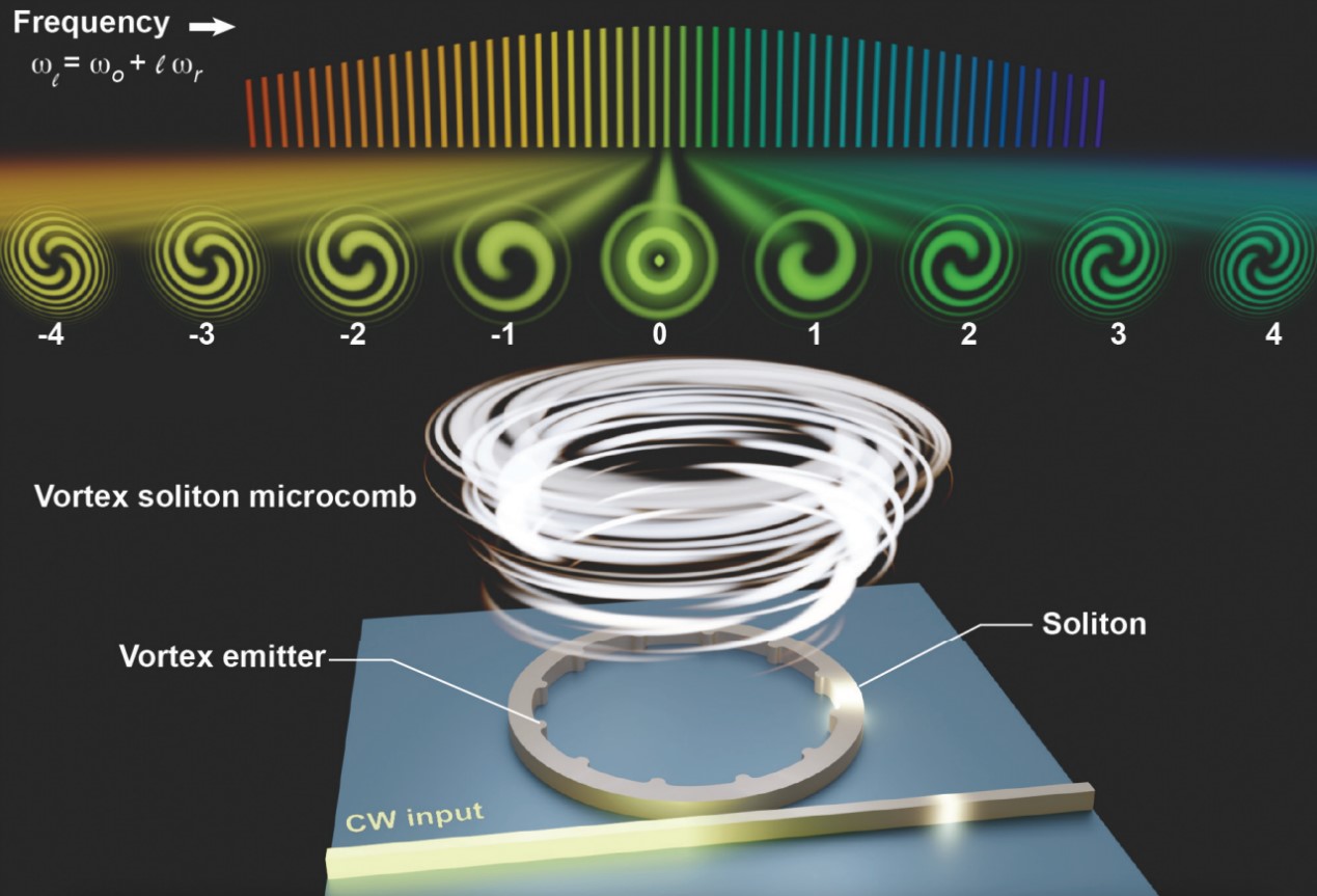 近日,mg4355线路检测官网现代光学研究所、人工微结构和介观物理国家重点实验室、纳光电子前沿科学中心“极端光学创新研究团队”杨起帆研究员、刘文静研究员、肖云峰教授以及龚旗煌院士等人合作,在实验上首次基于光子芯片获得了携带轨道角动量特性的光学频率梳。2024年3月29日,相关研究成果以“集成涡旋孤子微梳”(Integrated vortex soliton microcombs)为题,发表于《自然•光子学》(Nature Photonics)。
