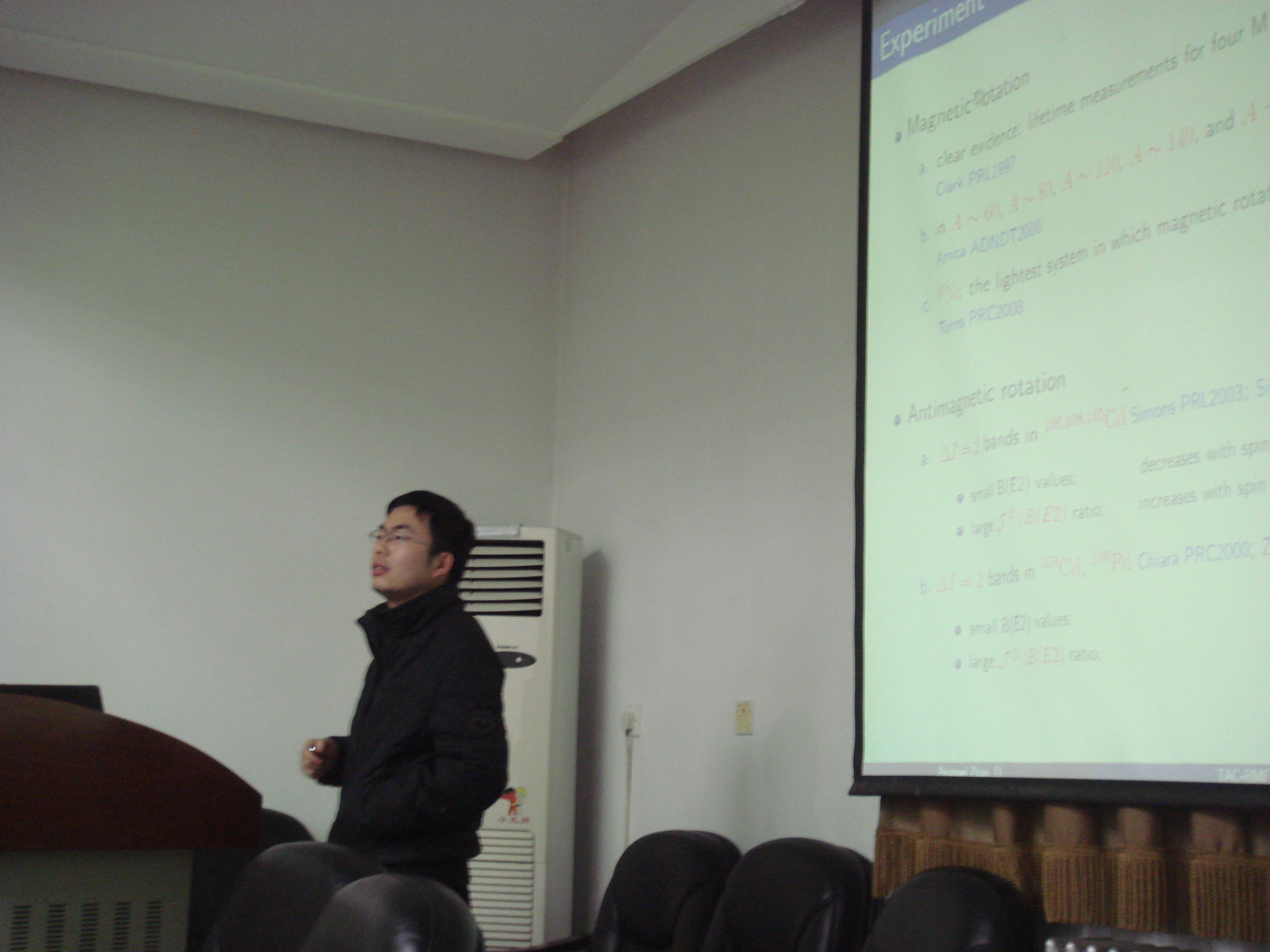 赵鹏巍,其深入浅出地为我们介绍了自己的工作“Covariant density functional theory for magnetic andantimagnetic rotation”,从中可以看到其扎实的核物理学科功底和认真的学术态度。