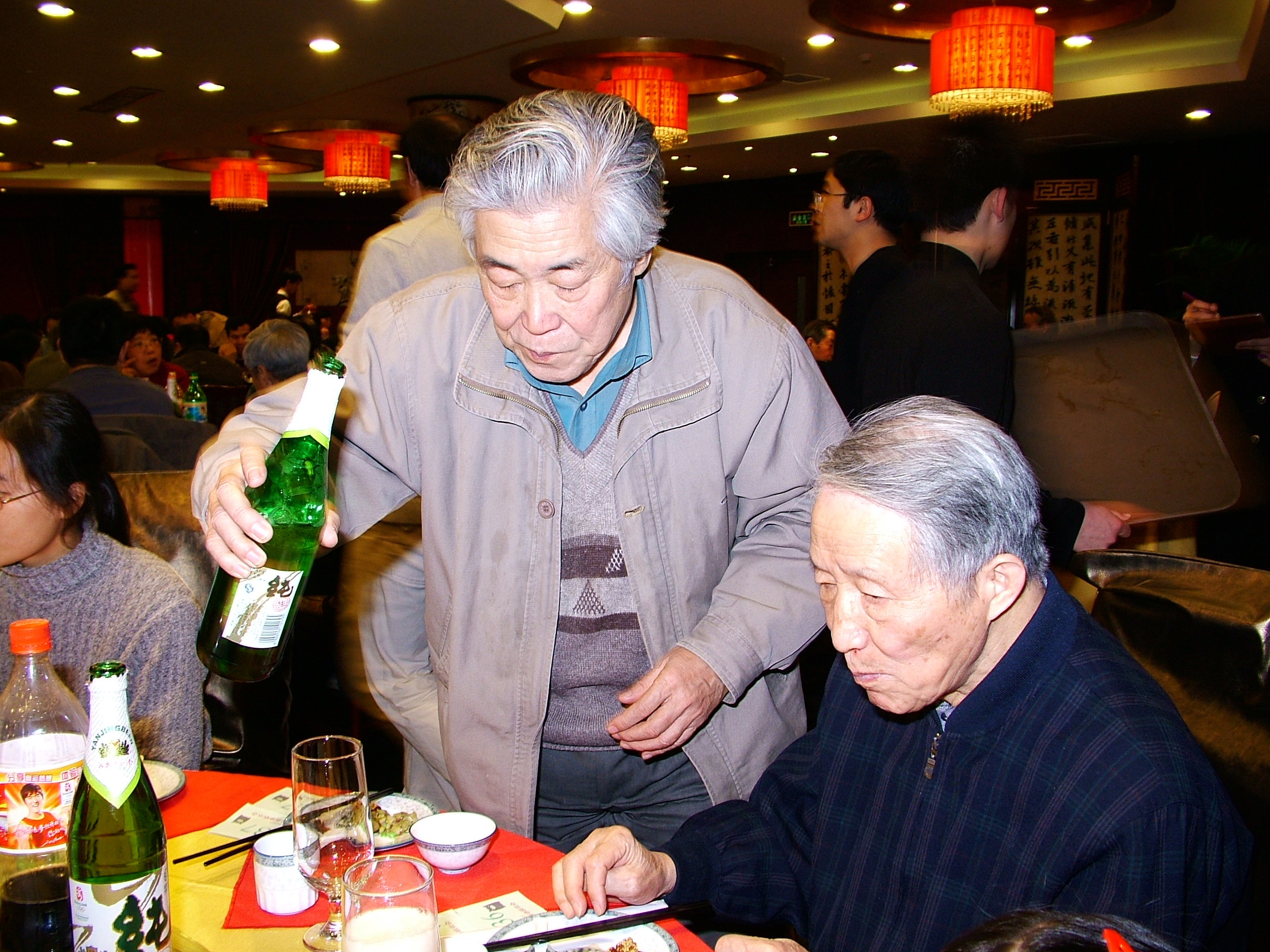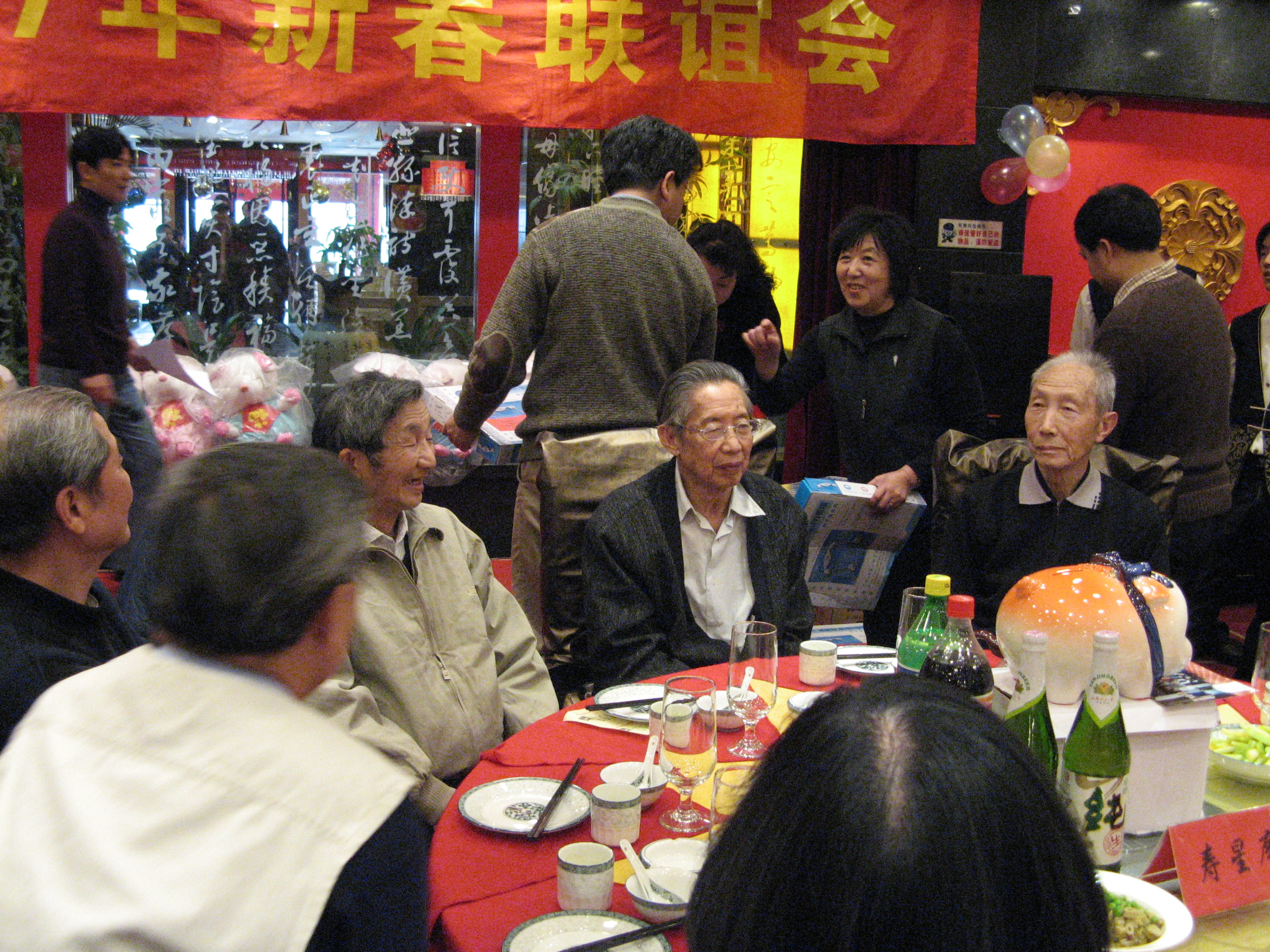 10点30分,大家陆续步入会场,来得较早的是一些离退休的老先生,他们虽然都已年逾花甲、鬓发花白,但面色红润、步履不能再说矫健,却精神矍铄,真是令人十分欣慰,更让人惊喜的是年已86岁的耄耋老人沈克琦先生拄着拐杖竟由已77岁高龄的赵凯华先生搀扶着来到了会场;随后,一直患病在家的龚镇雄和王秀琳老师,虽然都已过七旬,也坐着轮椅请人推着赶来了,这几位“特殊嘉宾”的到来,大家十分感动,纷纷围拢过来,怀着敬重的心情,向他们表示致意和问候。而学院的年轻一代则充满着青春朝气,他们三、五成群,簇拥着、谈笑着进人会场。此时的大厅早已是热气腾腾、欢声笑语不断,大家相互嘘寒问暖,叙谈着家事、国事、天下事,真是人人喜形于色,个个笑逐颜开。