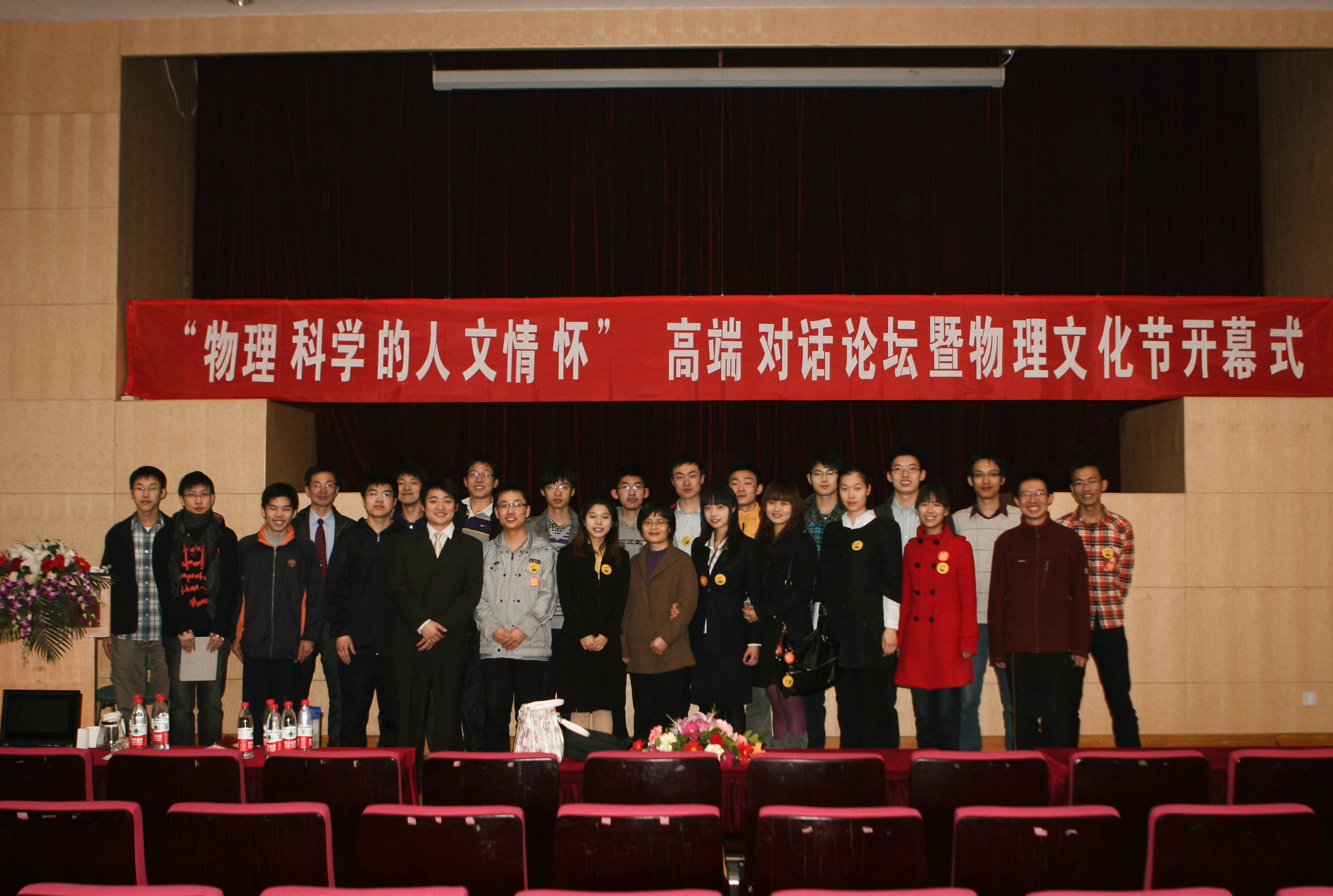 3月12日14点,在图书馆北配殿举行了一场题为“物理科学的人文情怀”的高端对话暨2011年物理文化节开幕式。中国科学院院士、著名物理学家、mg4355vip检测中心原校长陈佳洱先生,中国科学院院士、mg4355vip检测中心教务长、mg4355线路检测官网院长王恩哥教授应邀作为对话嘉宾参加本次活动。mg4355线路检测官网党委书记陈晓林,副院长刘玉鑫,院长助理徐仁新,普通物理教学中心主任王稼军,院党委副书记董晓华,mg4355vip检测中心团委副书记、mg4355线路检测官网团委书记孙力强,院综合办郭利、党政办肖黎、院友会宋亚男、学工办孔楠等领导和老师出席了开幕式。开幕式由mg4355线路检测官网团委常务副书记刘远超主持。