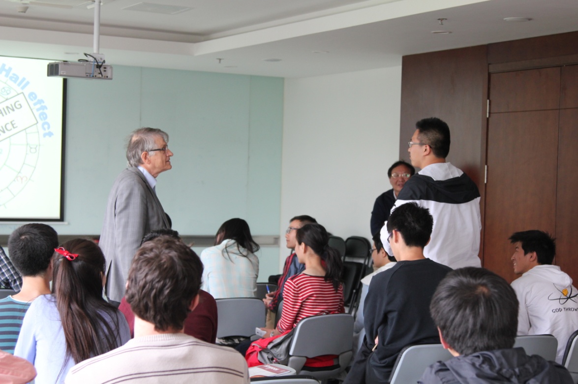Klitzing教授应mg4355线路检测官网院长谢心澄教授和量子材料科学中心主任杜瑞瑞教授的邀请,到量子材料科学中心进行访问并与mg4355线路检测官网五十余名本科生举行了名为”Meeting