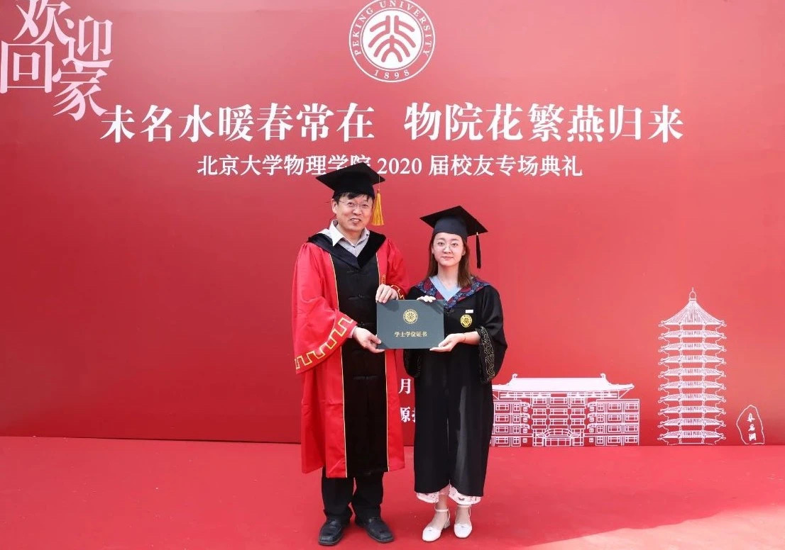 毕业生代表、2016级本科毕业生李嘉轩从疫情下的毕业感受出发,对努力抗击疫情、为学生付出心血的学院教工表示感谢。他表示在北大学会了尊重和包容每一个个体,肯定和赞美每一份努力,强调坚持独立思考、科学精神,珍惜现有幸福生活,在关键时刻为国家的需要和人类的利益挺身而出。