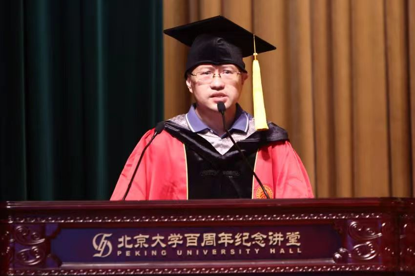 在未名湖畔、博雅塔下、物理楼前,在座的有些同学用四年光景获得了第一本学位证书,有些同学用三五年的光阴获得了硕士、博士学位,还有一些同学从本科到研究生阶段,在这座园子里浸润了九年。今天,在这里,既是你们的毕业典礼,也是你们的启程仪式。如雏鹰展翅,你们将去往更广阔的世界,将奔赴更深邃的星辰大海。无论你们继续守候燕园,还是去向何方,我想,在这座园子里培养的科学精神和批判性思维将助你怀抱梦想又脚踏实地,眼底的未名水、胸中的黄河月将映照你们一生。
