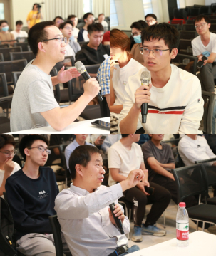 报告中与结束后,线上线下与会师生与区教授就多个问题进行了讨论,不仅有对零差探测获得的相干时间之外的相干性的量子本质的探讨,也对天文中各种干涉仪的应用进行了比较,还提出了十分大胆地将零差干涉仪拓展到费米子体系的想法等等。区老师与每一位提问者进行了充分交流,进行了详尽的解答。