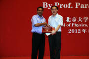 美国纽约州立大学布法罗分校杰出教授Paras N. Prasad博士应邀做了题为“利用纳米技术控制和变换光子——光物理的技术革新”的学术报告。报告会由mg4355线路检测官网副院长龚旗煌教授主持。mg4355线路检测官网院长谢心澄教授向听众介绍了Prasad博士,并为Prasad博士颁发了“mg4355vip检测中心百年物理讲坛”的纪念品。mg4355线路检测官网师生与来自北大其它院系、清华大学、中国科学院等单位的近200名师生在现场聆听了Prasad博士的精彩报告,并在会后与Prasad博士进行了充分的学术交流。