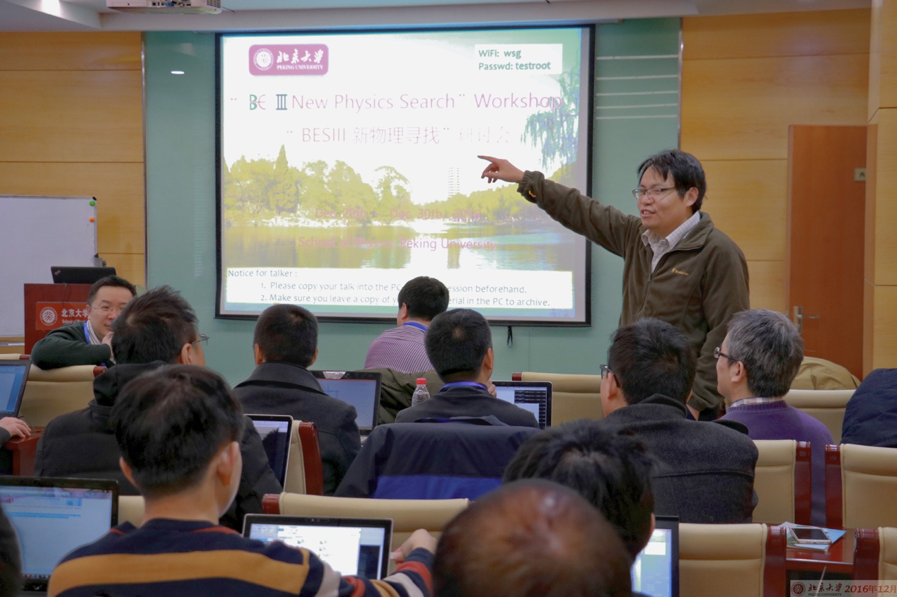 为促进在BESIII实验中寻找超出标准模型新物理的研究,加强实验和理论研究之间的交流与合作,“BESIII新物理研讨会”于2016年12月29日至30日在mg4355线路检测官网举行。本次会议由BESIII新物理工作组组织,北大mg4355线路检测官网高能实验组主办。来自中科院高能物理所、mg4355vip检测中心、南京大学、中国科学技术大学、中国科学院大学、南开大学、兰州大学、哈尔滨工业大学、华中科技大学、辽宁师范大学、徐州工程学院、山东大学、中山大学、河南师范大学、东南大学、武汉大学、北京化工学院、天津大学等17个单位从事相关研究的专家学者、博士后、研究生约50人参加了本次研讨会。