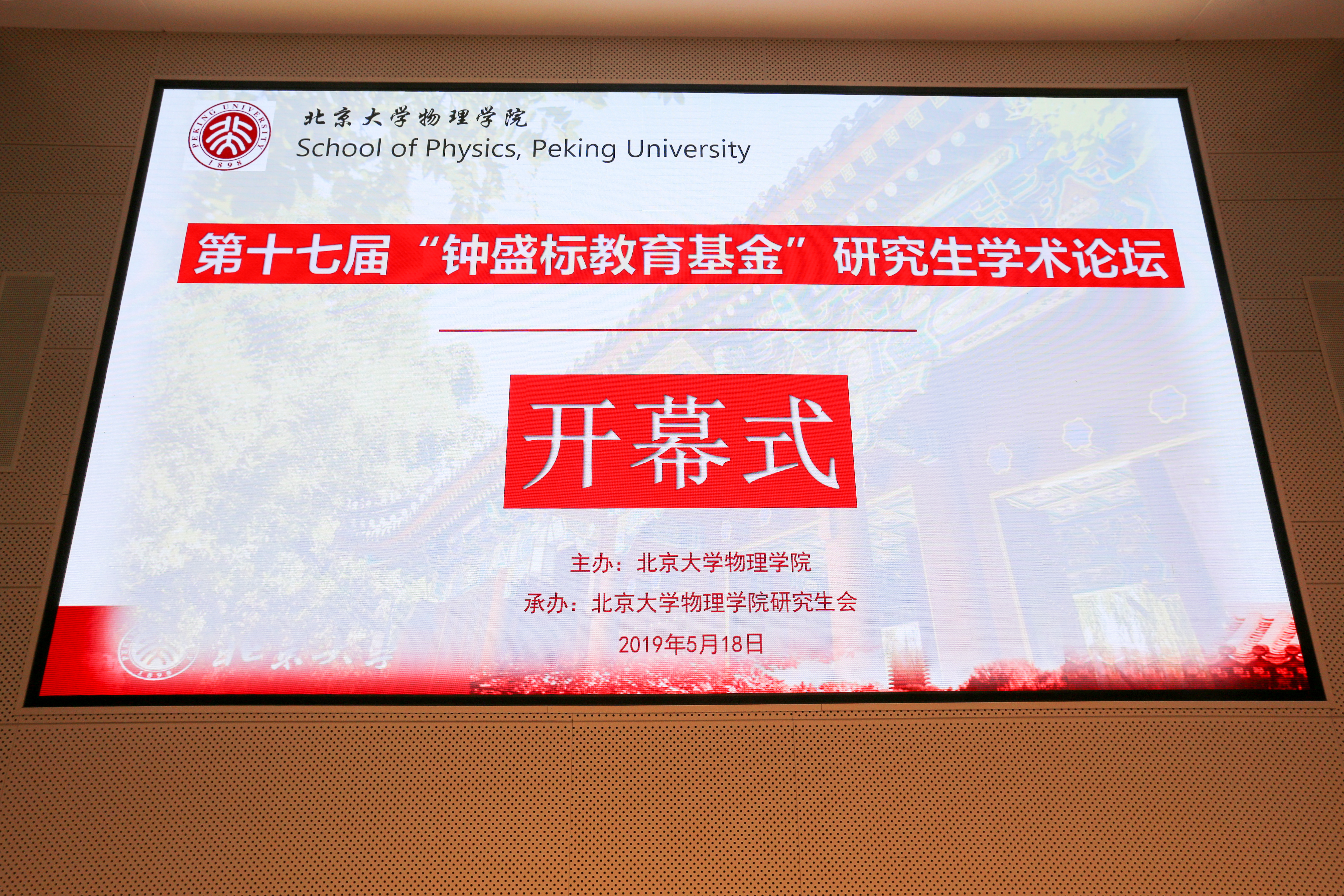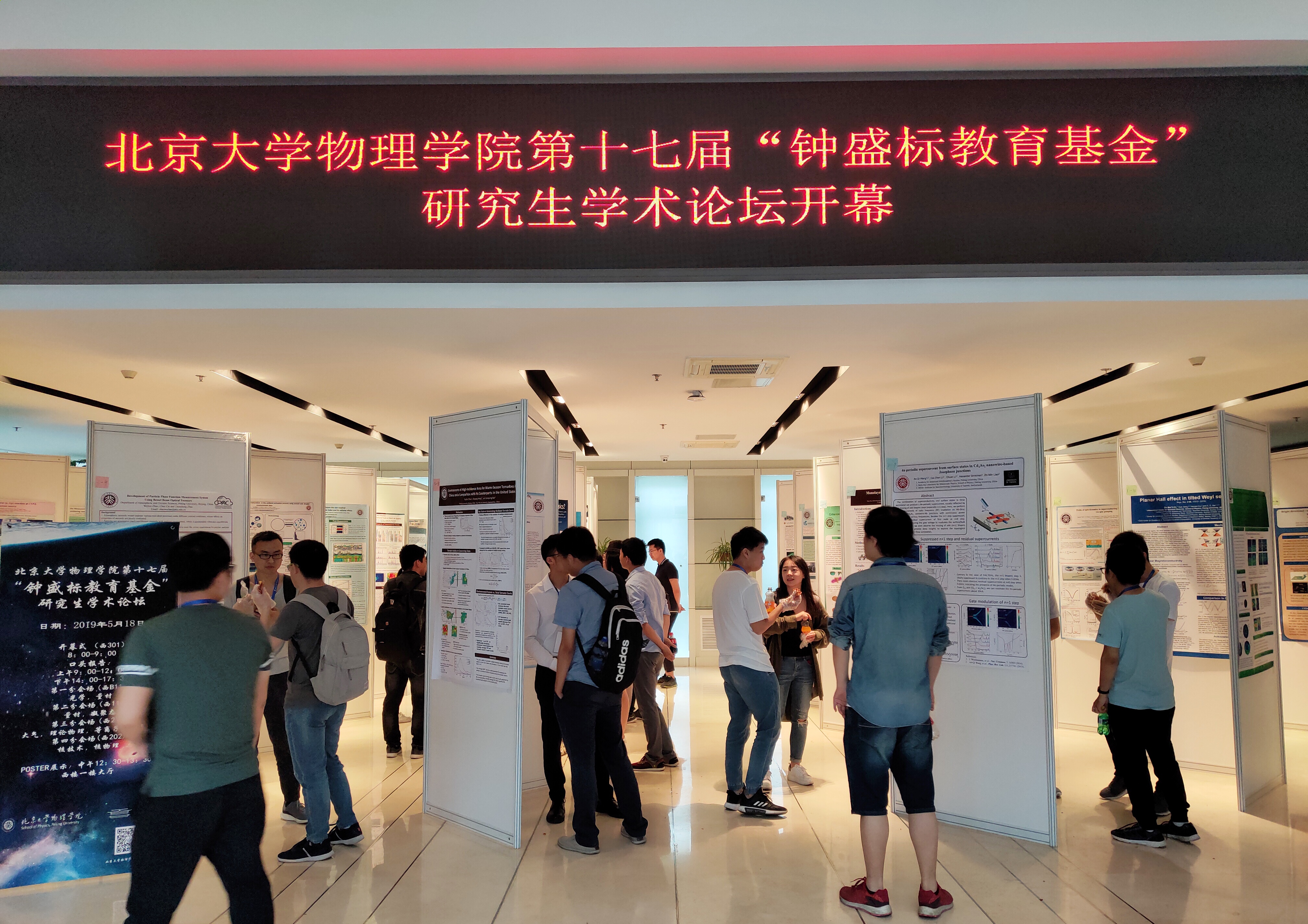 “钟盛标教育基金”研究生学术论坛,是由已故系友钟盛标先生之子钟赐贤先生资助的一项支持研究生科研创新的学术活动。论坛以“为研究生同学提供交流和展示的平台;促进我院不同学术领域的沟通;提高研究生同学的学术水平和科研创新能力”为宗旨。自2003年开始,已成功举办十六届,一批又一批优秀的北大物理人在这个平台上展示自身科研风采,交流科研经验,迄今为止共有1304位学生参加。很多参赛者从学生变成了老师,据不完全统计,前十届404名参赛者中,共有195人在学术界工作,包括北大29人,其他985高校48人,中科院系统25人,国外科研机构42人,其他国内高校或科研机构51人。