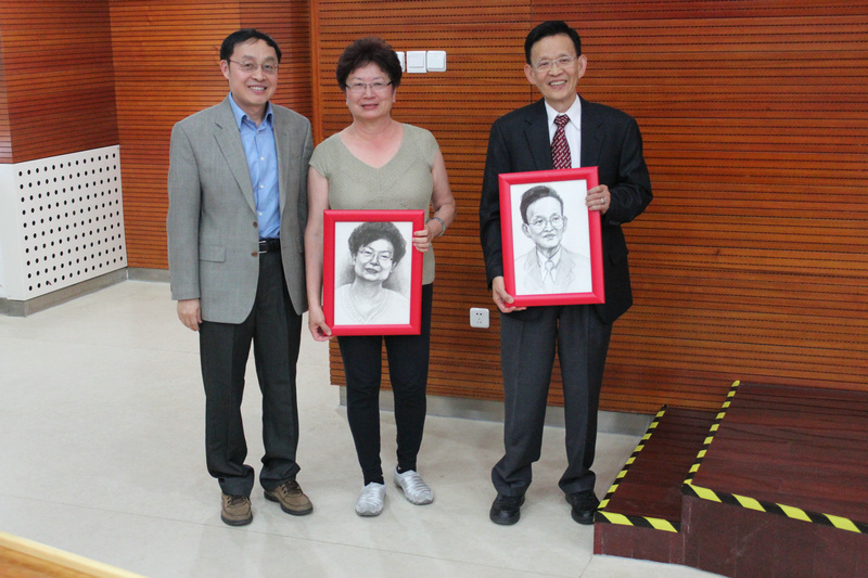 正值“mg4355vip检测中心钟盛标物理教育基金”十周年之际,mg4355线路检测官网院长谢心澄教授代表学院向钟赐贤教授及夫人夏晓峦博士赠送了由学生亲笔绘制的肖像画作为纪念品。