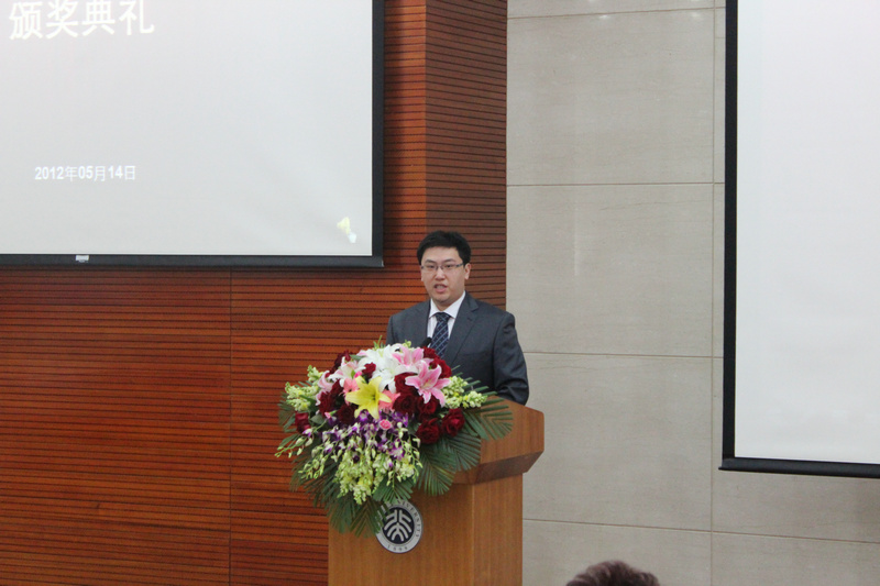 基金设立人钟赐贤教授在典礼上致辞。他首先回顾了北大近十年的巨大变化,对北大的迅猛发展表示肯定。同时指出,随着我国经济的高速增长和基础设施的逐步完善,国家将会面临许多发展中的问题,如二氧化碳排放陡增等,因此对科研工作者提出了新的要求和挑战。他勉励获奖师生要专心学术,开拓进取,勇攀高峰,为解决国家新时期所面临的问题贡献自己的智慧和力量。最后,钟教授对全体获奖师生表示祝贺,并祝愿大家在今后的工作和学习中再创佳绩。