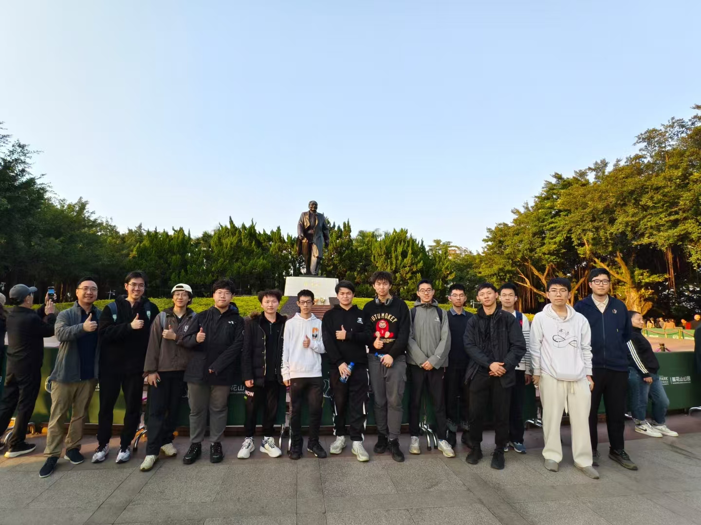 体验南方科技大学的健身设备 在深圳市莲花山公园邓小平铜像前合影