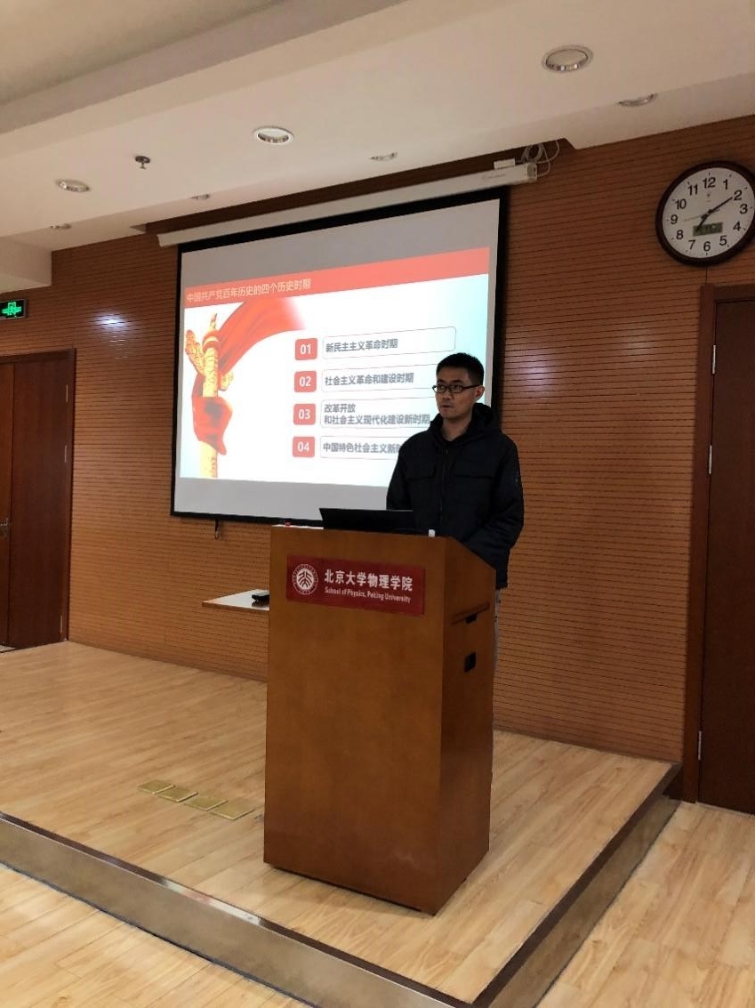 中国共产党百年历史可以划分为新民主主义革命时期,社会主义革命和建设时期,改革开放和社会主义现代化建设新时期,以及中国特色社会主义新时代四个历史时期,学习会上分别由李龙飞,卢倬成,王朕铎,杨光四位同学分别带领大家重温并学习了各个阶段的历史背景以及中国共产党在特定历史背景下完成的重大历史任务。