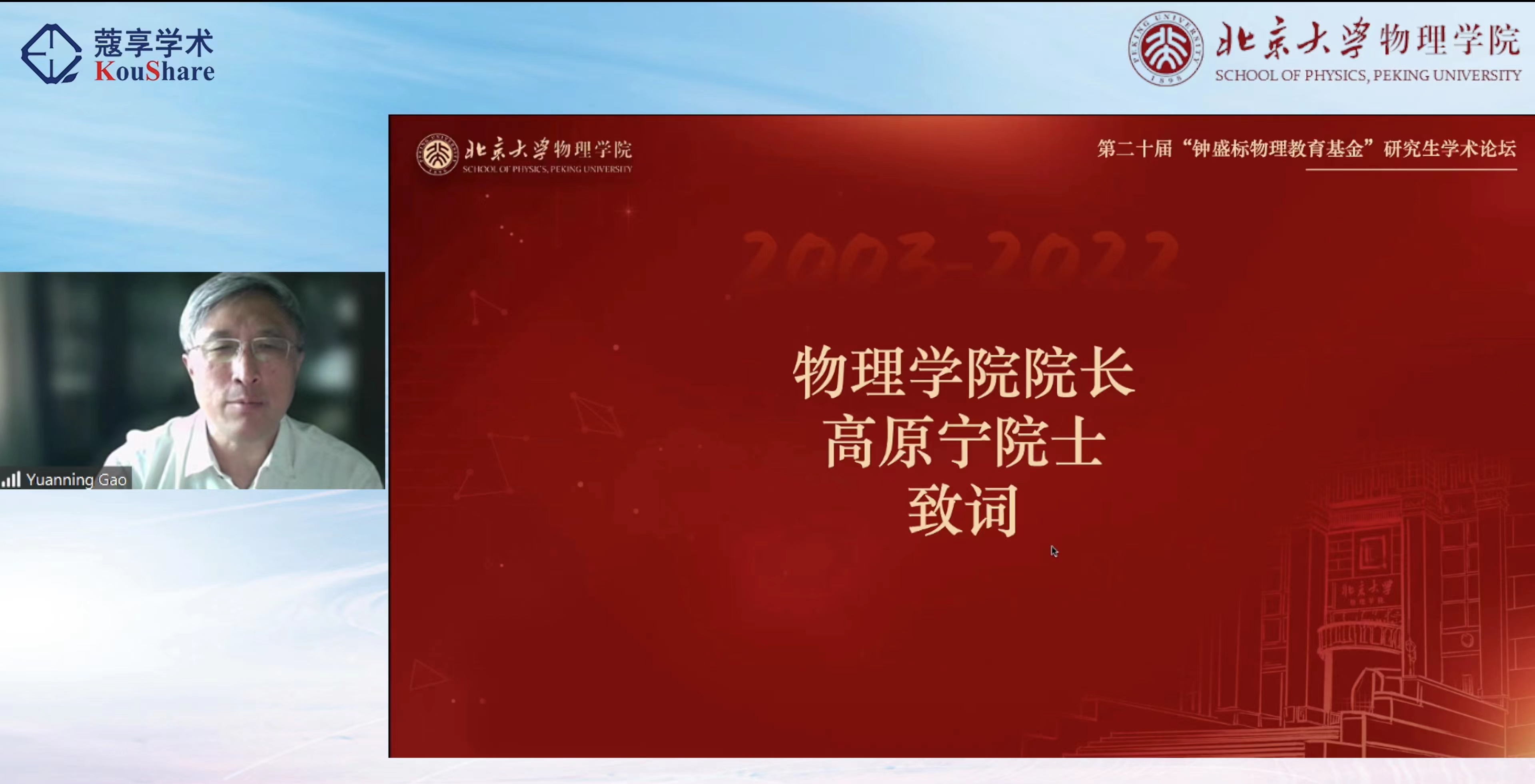 mg4355线路检测官网院长高原宁院士在开幕词中,盛赞钟赐贤先生伉俪对mg4355vip检测中心基础学科建设的勉力支持和心系国内高等教育事业的赤子情怀,高度评价了论坛对开启研究生学术成长之路的独特意义。他表示,mg4355线路检测官网始终秉承“北大物理”科学强国育英才的百年传统,加大力度培养专业知识与创新能力、家国情怀与国际视野兼具的生力军,全面提升创新领军人才的自主培养能力。